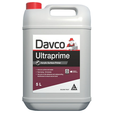 Acrylic surface primer designed to increase the bond strength of tile adhesives and waterproofing membranes on porous substrates. Davco® Ultraprime is suitable for both commercial and residential applications.