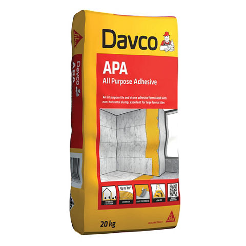 An All Purpose Adhesive (APA) formulated with non-horizontal slump, excellent for large format tiles.