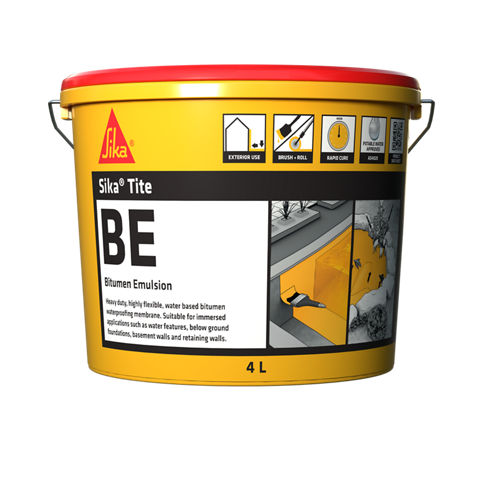 Sika® Tite BE is a heavy duty, highly flexible, water based bitumen waterproofing membrane. Sika® Tite BE is suitable for permanent immersion and provides excellent adhesion to a wide range of substrates.Sika® Tite BE is fast drying, easy to apply and is designed for non-UV exposed applications.